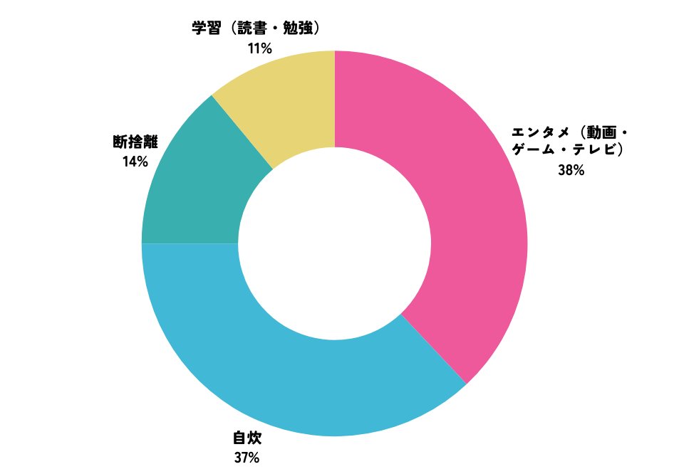 以前当サイトで実施したアンケート(935人回答)では、自宅でのインターネット利用用途はエンタメ>自炊>断捨離>学習の順という結果でした。