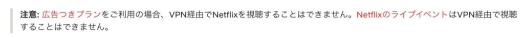 ※Netflix公式サイトにも「広告つきプラン」はVPN経由での視聴はできないと掲載されています。