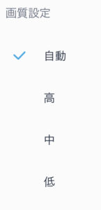 映像品質にこだわりがない場合は、画質を「中」または「低」に変更することでデータ消費量を抑えられます。